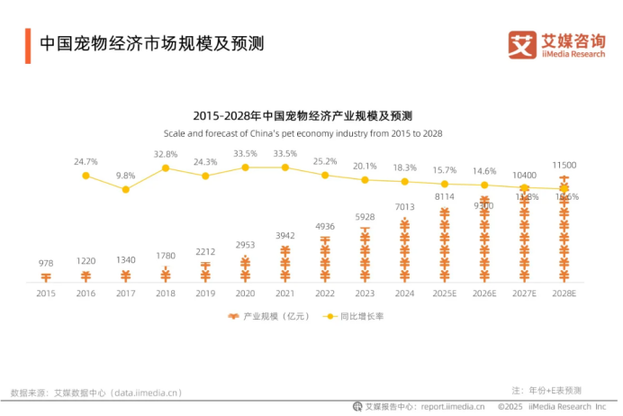 iiMedia Research(艾媒咨询)数据显示,中国宠物经济规模增长迅猛,预计2027年将突破10000亿元,围绕宠物“衣食住行”的各个细分领域也将经历专业化与精细化的深刻变革。