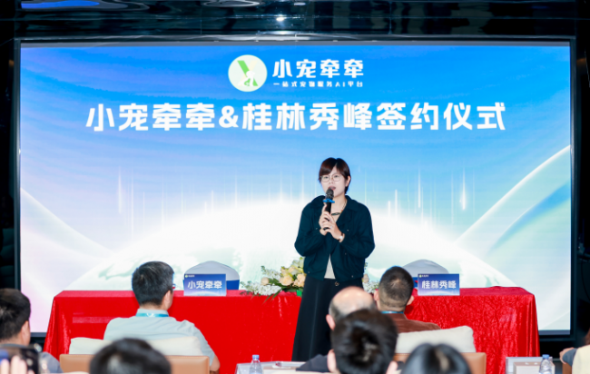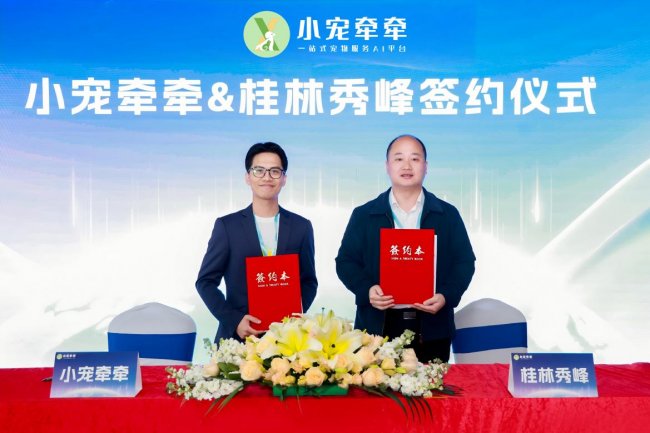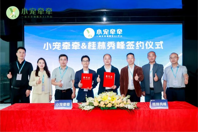 4月24日,深圳龙华数字创新中心春意盎然。深圳市小宠牵牵科技有限公司与桂林市秀峰区人民政府在此隆重举行签约仪式,同时宣布“小宠牵牵全球宠物平台”正式发布。这标志着政企双方以“科技平台+山水名城”双向奔赴,共同开启宠物经济与文旅融合发展的新篇章。