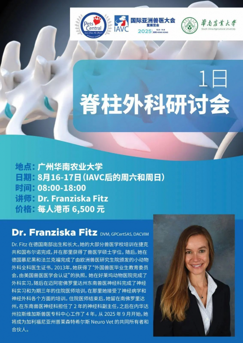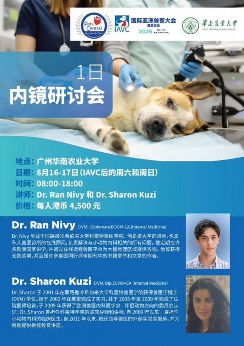 IAVC 2025注重理论与实践结合,提供多项实践培训:• 心脏超声研讨会(8月11-12日):由Changbaig Hyun医生领衔,重点培训小动物即时超声(POCUS)诊断技术,学员可携带犬只进行实时操作训练• 内镜研讨会(8月16-17日):与华南农业大学合作开展内窥镜、脊柱外科及超声心动图沉浸式培训